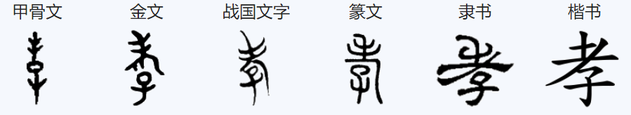據(jù)考證,商代就有了“孝”字,金文的“孝”字,字形是一個孩子托著老人,作服侍狀。