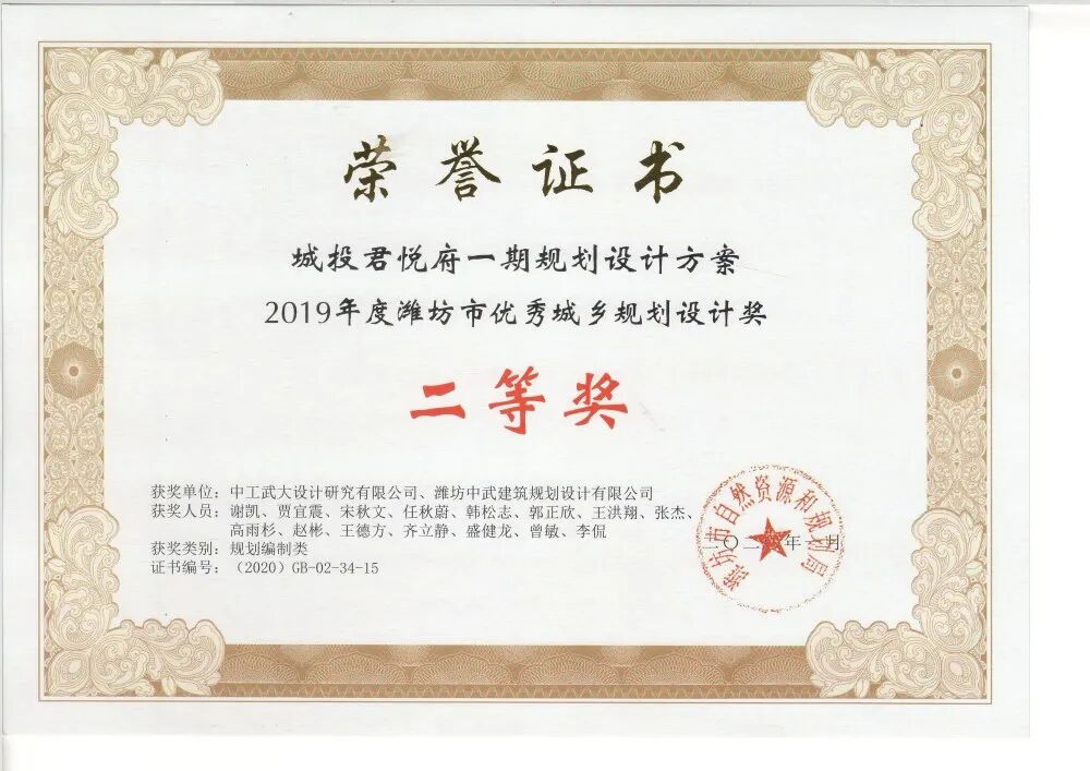 2019年度濰坊市優(yōu)秀城鄉(xiāng)規(guī)劃設計獎評選活動由市自然資源和規(guī)劃局組織開展,按照《全國優(yōu)秀城鄉(xiāng)規(guī)劃設計獎評選管理辦法》和《山東省城市規(guī)劃設計評優(yōu)辦法》的有關規(guī)定,組織知名專家進行專業(yè)評選和審定,旨在以優(yōu)質(zhì)的規(guī)劃設計成果,提升城市建設品質(zhì),代表了當前濰坊規(guī)劃設計的最前沿設計水準。本次獲獎,代表著行業(yè)對城投·君悅府項目規(guī)劃與設計水平的肯定,同時也激勵著集團始終堅持品質(zhì)提升和創(chuàng)新引領,打造出更多高品質(zhì)產(chǎn)品,在推動現(xiàn)代化高品質(zhì)城市建設進程中彰顯國企擔當與責任。